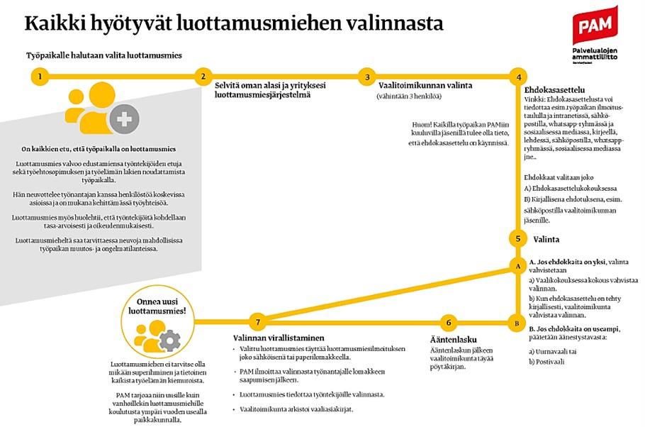 📌🙋♂️ Vaalisyksy on käynnissä!Monilla työpaikoilla järjestetään luottamusmies- ja työsuojeluvaalit tänä syksynä. Valinnat ovat nyt ajankohtaisia. juuri nyt. Voidaksesi ehdottaa luottamusmiestä ja osallistua valintaan, sinun tulee olla PAMin varsinainen jäsen. PAM - Savonlinnan osastolla on enenevästi luottamushenkilöitä työpaikoilla, joten tutustu sinäkin materiaaleihin ja polkaise valinnat käyntiin nyt! Materiaalit (alla): Lisätietoa: Jos työpaikallasi ei ole vielä luottamusmiestä ja kiinnnostuit, ota yhteyttä - autan mielelläni:Niina Karppanen, järjestötoimitsija Vaikuttava järjestäminen -osasto |